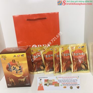 – Hồng Sâm Linh Chi Nhung Hươu Nấm Thượng Hoàng Hàn Quốc được đại lý sieuthihanghan.com nhập khẩu chính hãng từ Hàn Quốc. Sản phẩm cam kết chất lượng đến tận tay quý khách hàng, kiểm tra trước khi nhận và thanh toán trực tiếp.