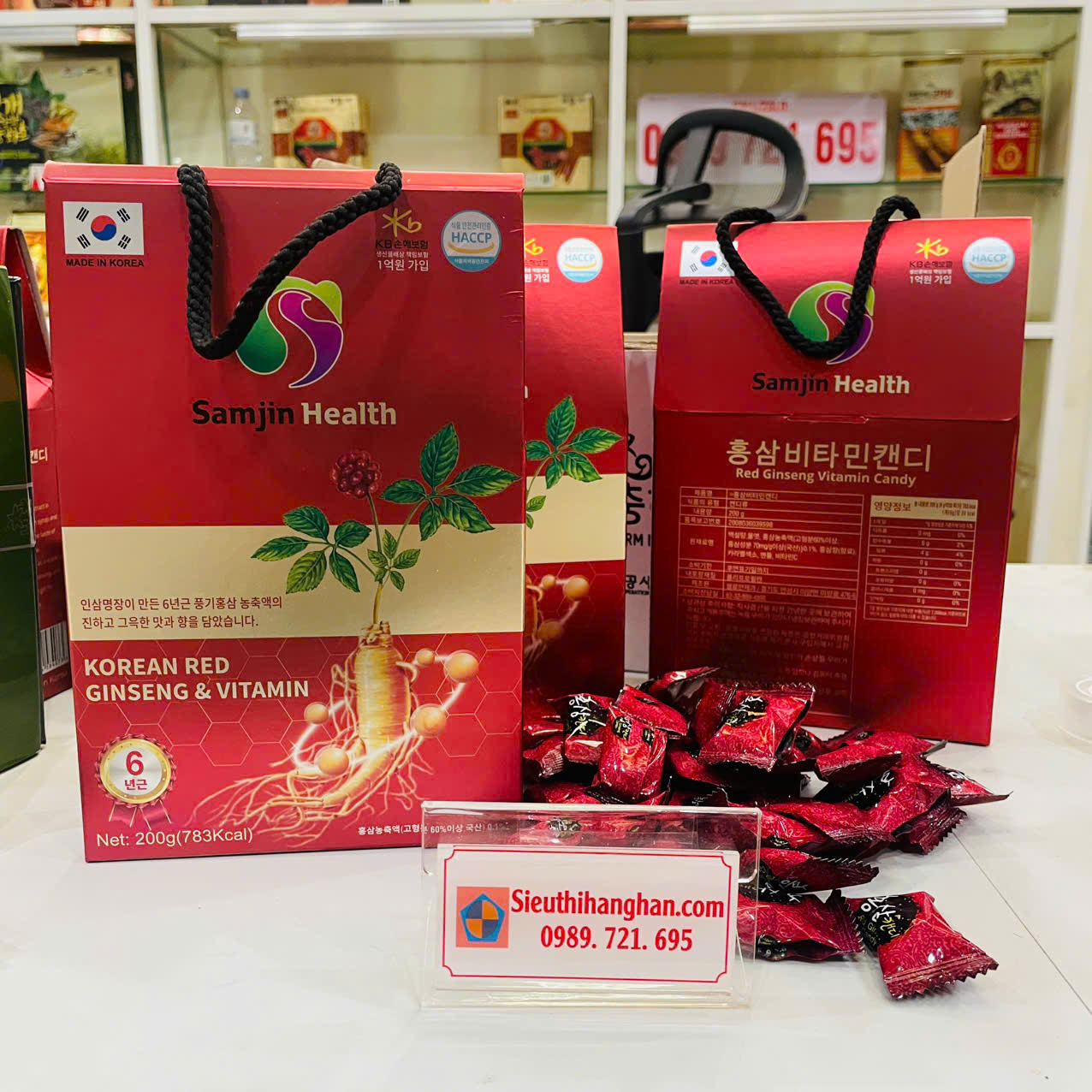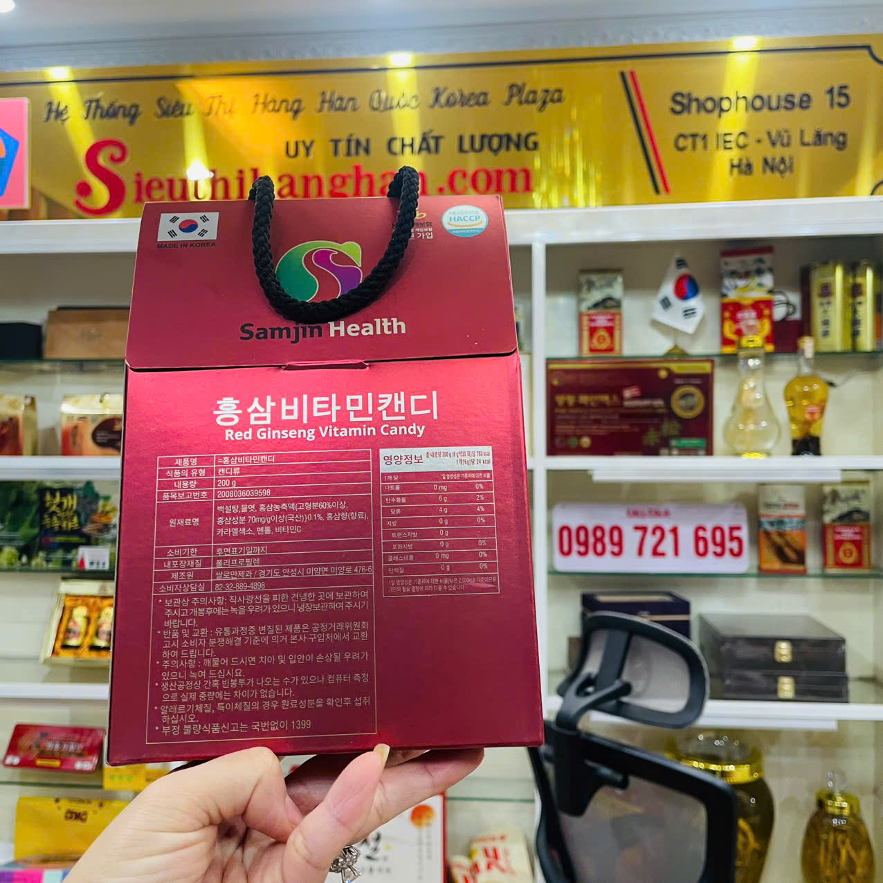 | Tên sản phẩm | Kẹo Nhân Sâm Hàn Quốc Samjin Health Korean Redginseng & Vitamin |