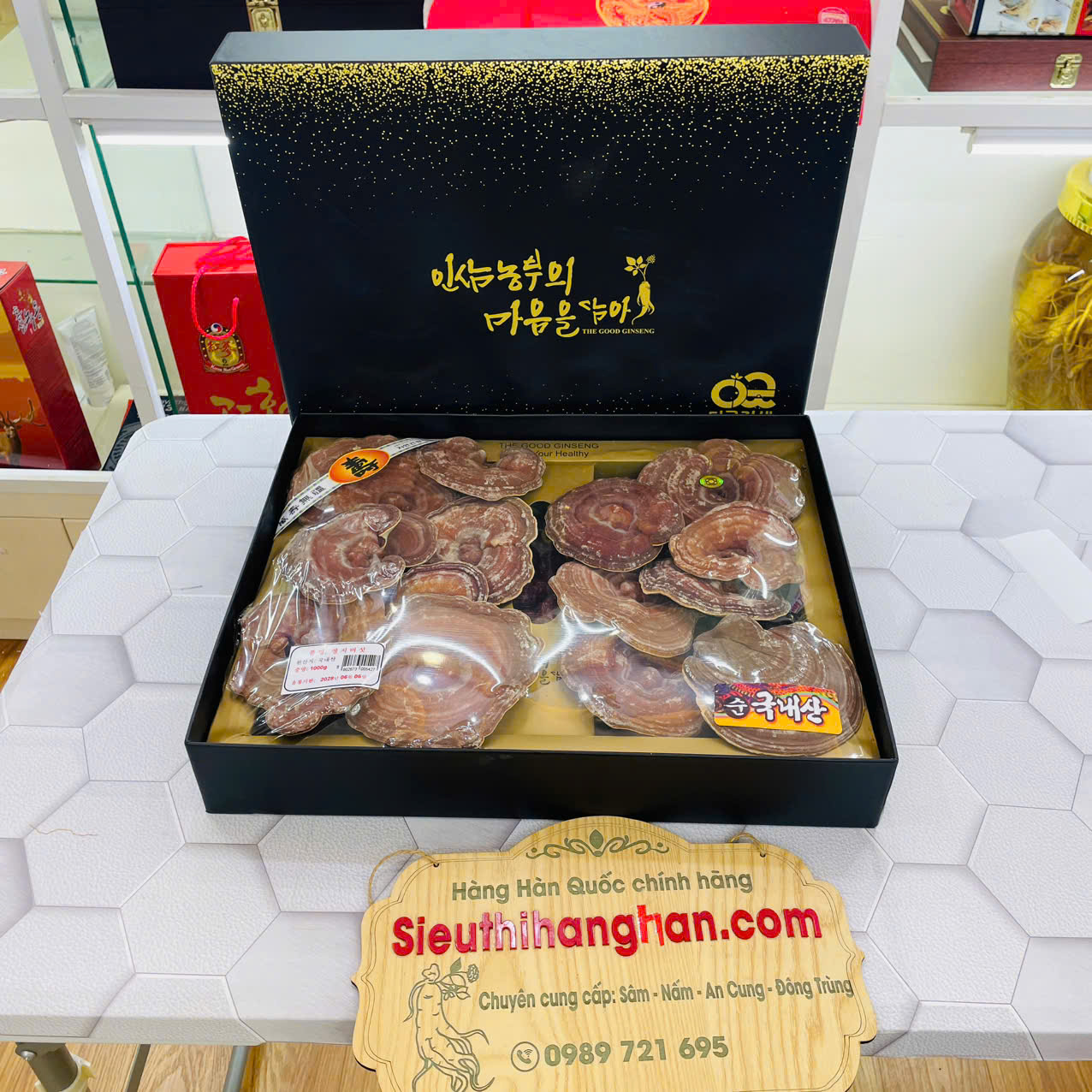 Ganoderma lucidum (linh chi) là loại nấm dược liệu quý. Tại Hàn Quốc, linh chi đỏ được nuôi trồng trong môi trường tiêu chuẩn nghiêm ngặt, khí hậu sạch, quy trình sấy – bảo quản hiện đại giúp giữ trọn hoạt chất sinh học.